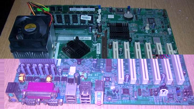 Oto trzy płyty z procesorami ,które nabyłem na aukcji (jako złom komputerowy - śmieci elektroniczne ) ,po dodaniu chłodzenia i pamięci Uruchomiły się ! Dwie z nich mimo "wybulonych" kondensatorów !