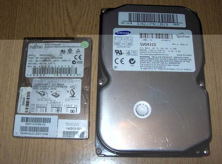 Dwa dyski ,jeden 3.5" ,drugi 2.5" obydwa 4GB obydwa po testach okazały się sprawne