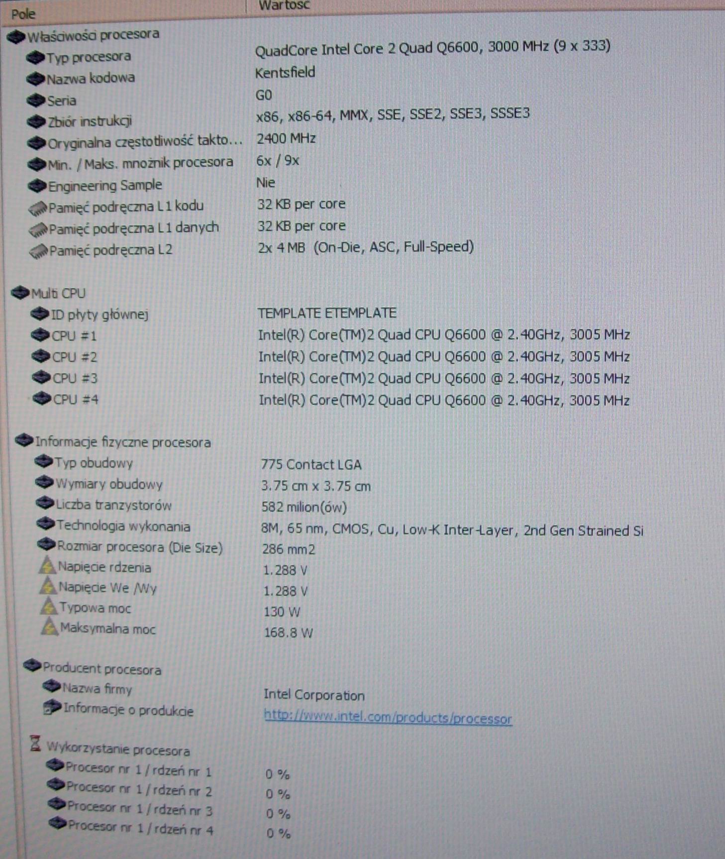 karta sieciowa RTL8139, dźwiękowa Audigy 2 ZS, zasilacz Corsair, dysk 500GB (planowo ma tu wskoczyć 2xWD Raptor w RAID)