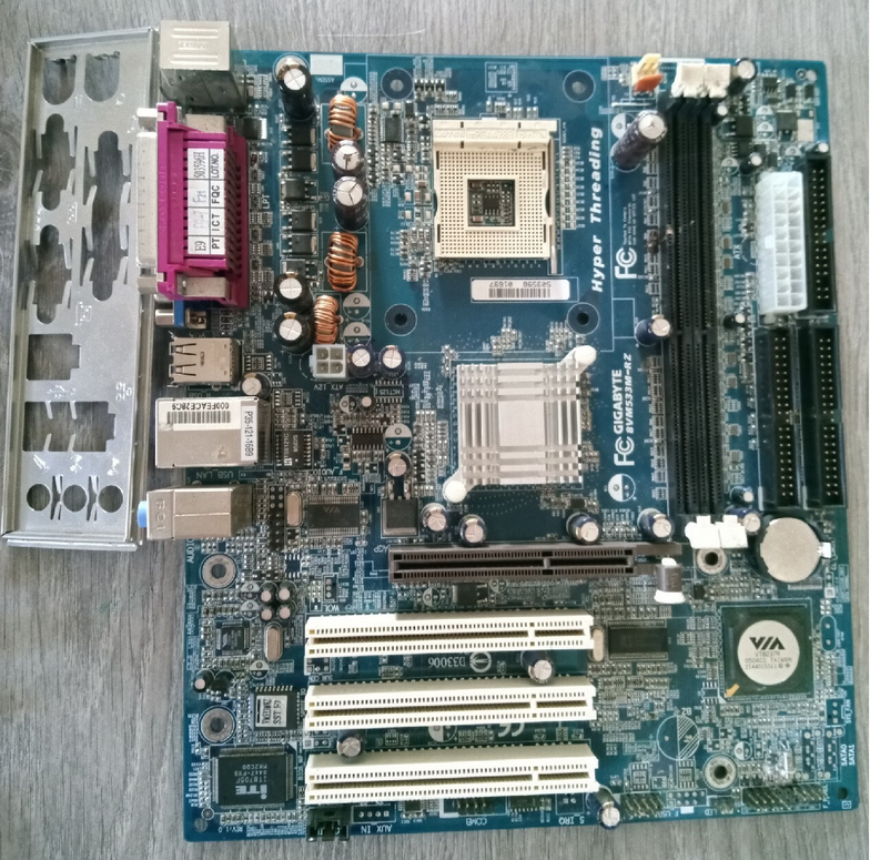 - GIGABYTE 8VM533M-RZ (7 i 8 zdjęcie) wizualnie spalone 2 kondensatory prawdopodobnie od sekcji zasilania i 1 napuchnięty przy slotach RAM, nie testowana.