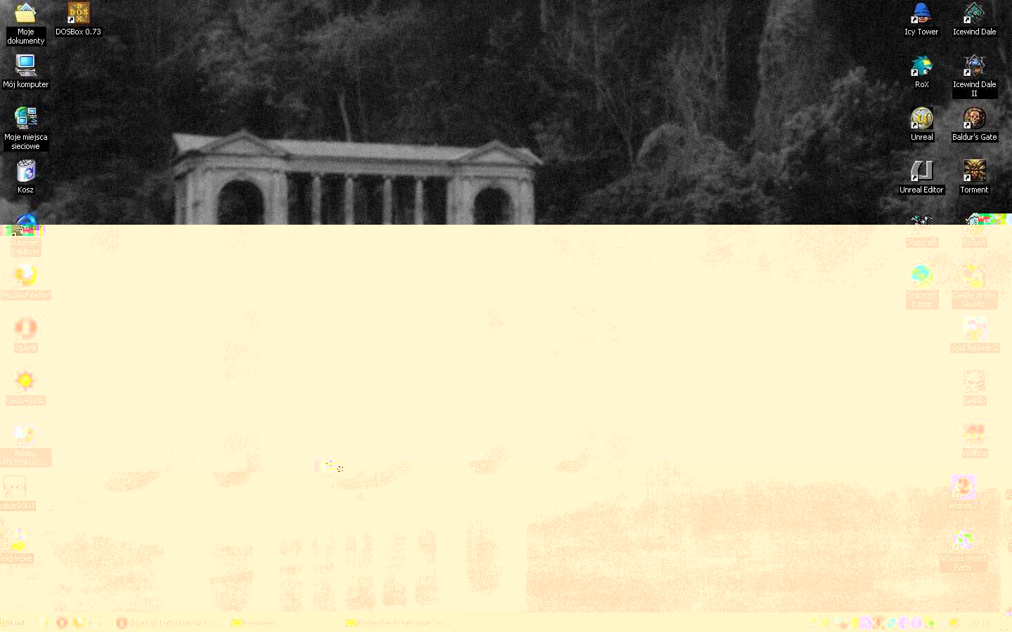 Ja tutaj wrzucam sobie moją konfigurację windowsa 95 oraz trochę ciekawsze - moją autentyczną konfigurację windowsa 2000 z 2009-2010 roku, kiedy mój komputer trzymałem w pudełku od płyty głownej. Moja rodzina nie była biedna . Po prostu uznawali, że komputer to najgorsze zło i lepiej będzie jak zginie jak najszybciej. A tu skubaniec nie chciał umrzeć .